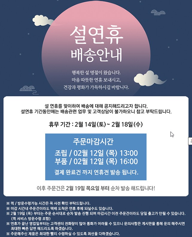 - 공휴일은 배송기간에 포함이 되지 않습니다.